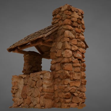 It took the better part of several days to photograph the subject, align, generate points, mesh, section it, remesh, UV map, reproject, build textures, paint additional detail from the texture and reassemble. Whew! The final prop is ready to be dropped in to our Western game to hide evil gunmen anywhere we want in the scenes. Yes, it took that long and required 355 photos of the original subject in overcast lighting. But hey, look at that beautiful 3D-ness! :)