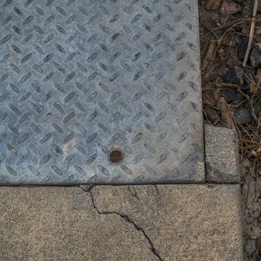 This series of scans cover the sidewalk details around us including metal panels in various states of rust, concrete, and ground covers.