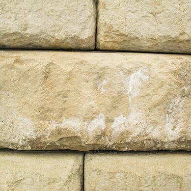 These huge stone blocks seem to be made of concrete and are a couple feet long. Some are worn and others look very fresh.